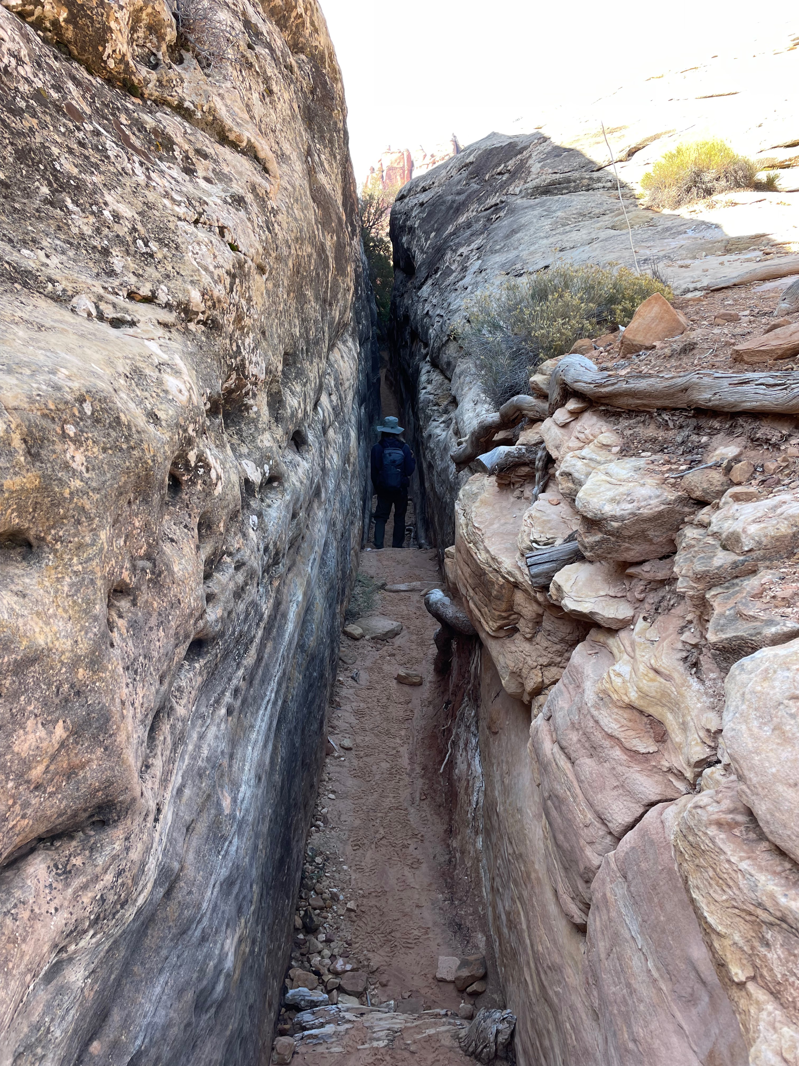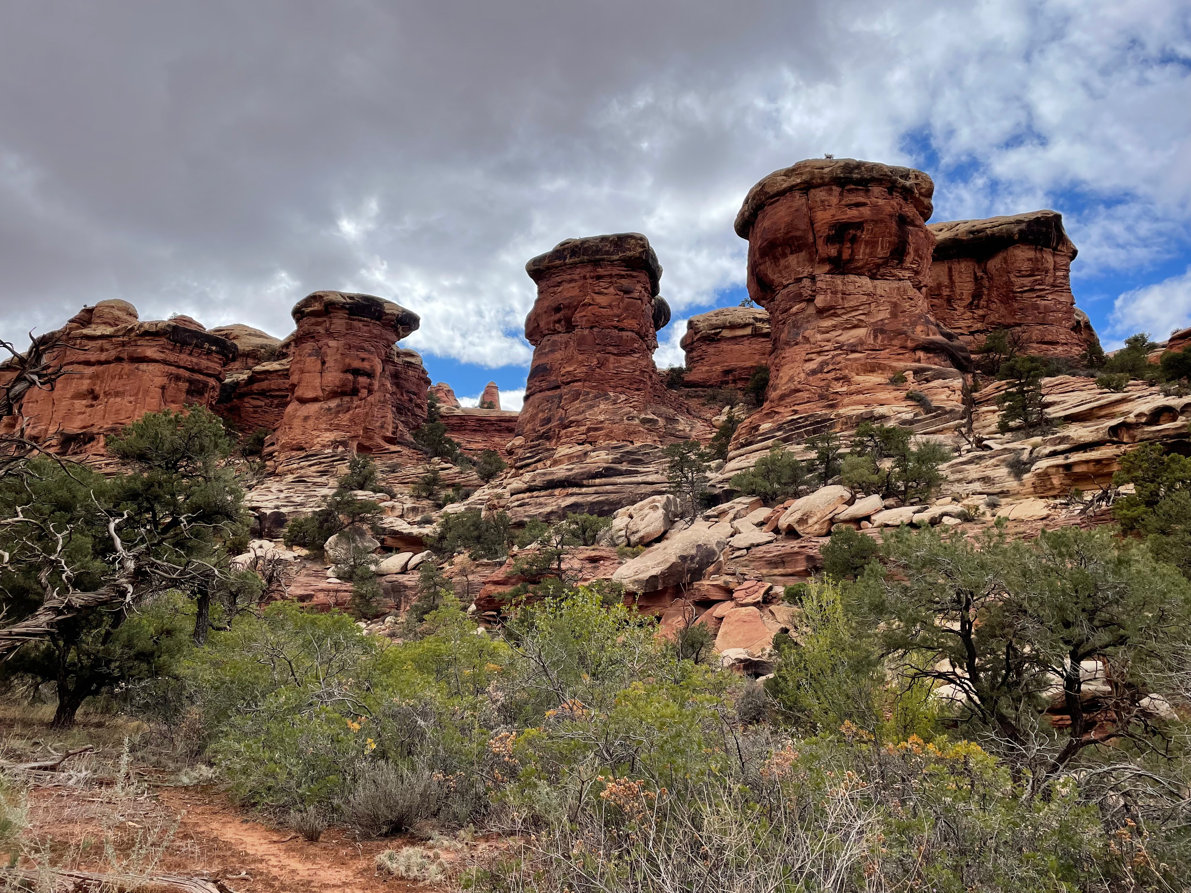 To our hiking friends: if you find yourself in this area, then make sure to include a trip to the Canyonlands’ Needles. The extensive trail network winds deeps into the canyons and most times it feels like you are alone in the wilderness. The park offers backcountry camp sites; however, there is no water on the trails. We spoke with a hiker who carried all of her water and we also saw water ‘stashed’ for future use. The majority of the trails start at the [flush-toilet] campground, which makes for a relatively easy trip to plan!